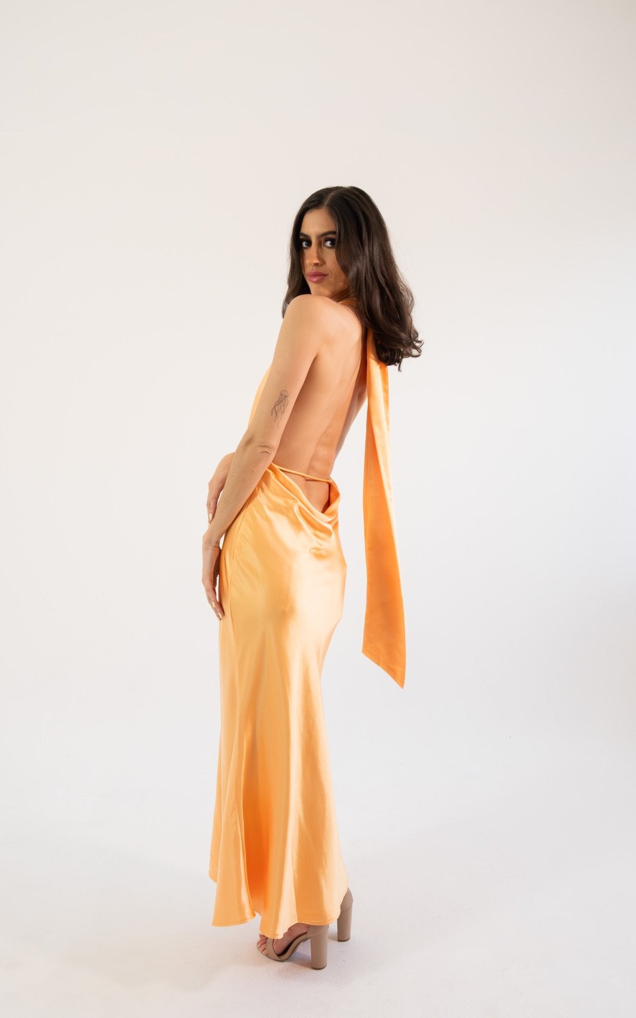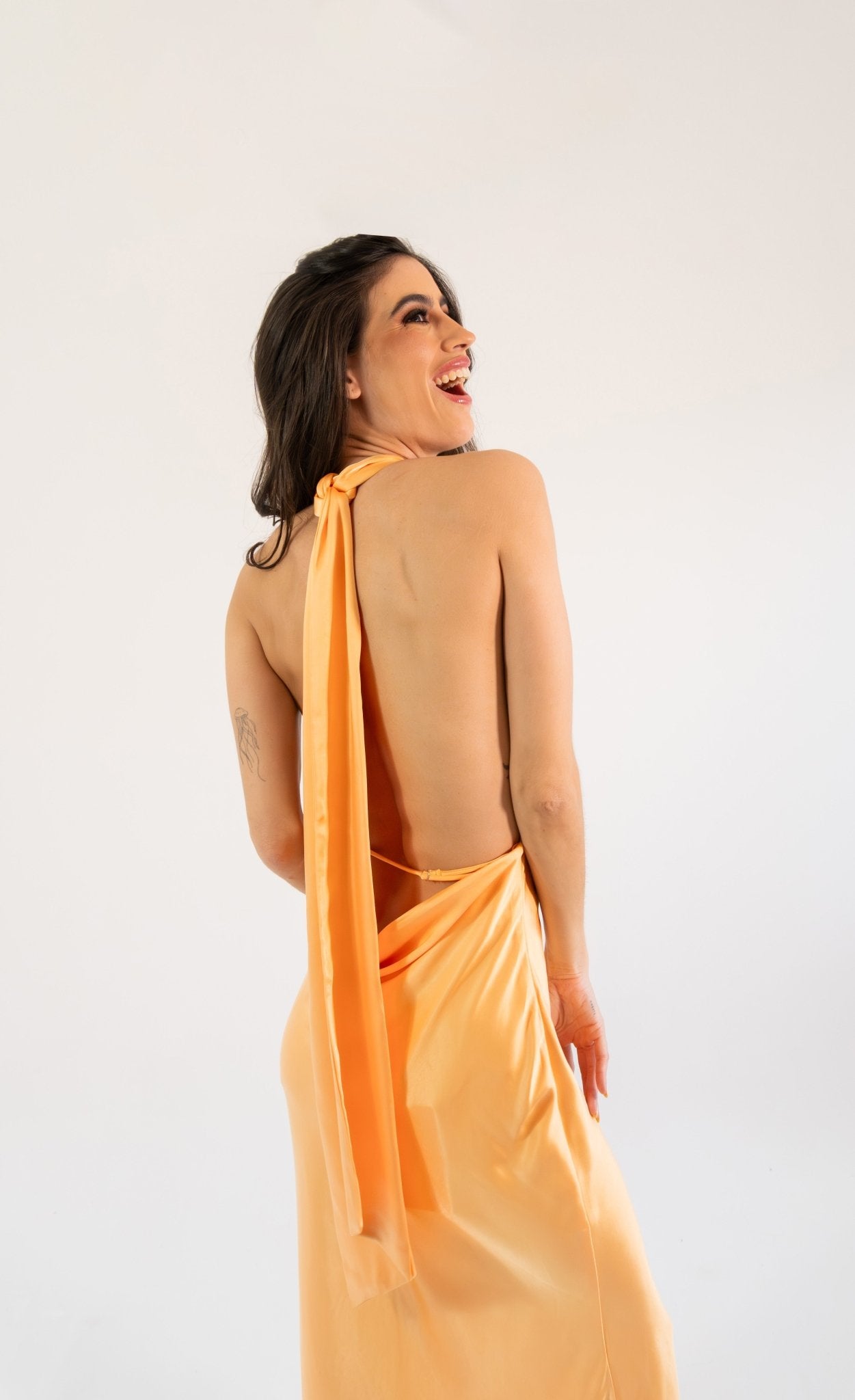 Notas: ¡Elga cambiará por completo tu look! Este vestido maxi con cuello halter neck, tirantes ajustables en la espalda baja hará que brilles con luz propia. Consigue el look que deseas: elegante, moderno y único. ¿Tú a qué esperas?