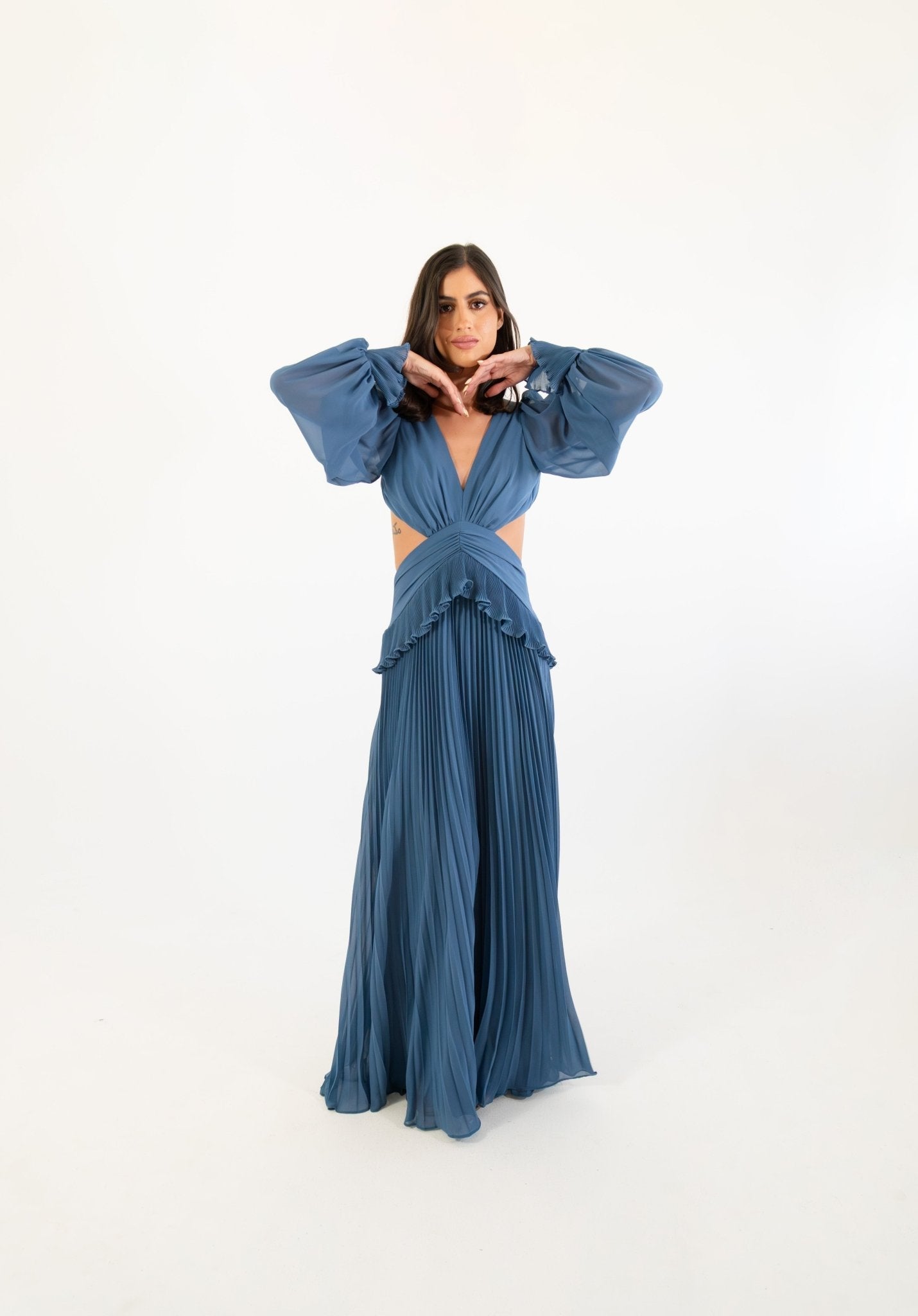 El Zafira Dress es una pieza sofisticada que destaca por su silueta estilizada y su diseño versátil: